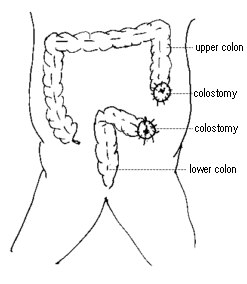- A portion of the colon (or ileum) has been operated upon and needs to be 'rested' until it is healed. In this case, the colostomy is often temporary and is usually reversed at a later date, leaving the patient with a small scar in place of the stoma. Children undergoing surgery for extensive pelvic tumors commonly are given a colostomy in preparation for surgery to remove the tumor, followed by reversal of the colostomy.