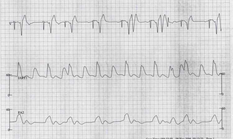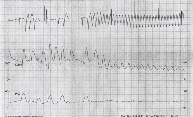Notice the Bigeminal pattern of the PVC in the rhythm strip above. This same PVC can be seen inducing Ventricular Fibrillation in the rhythm strip below.