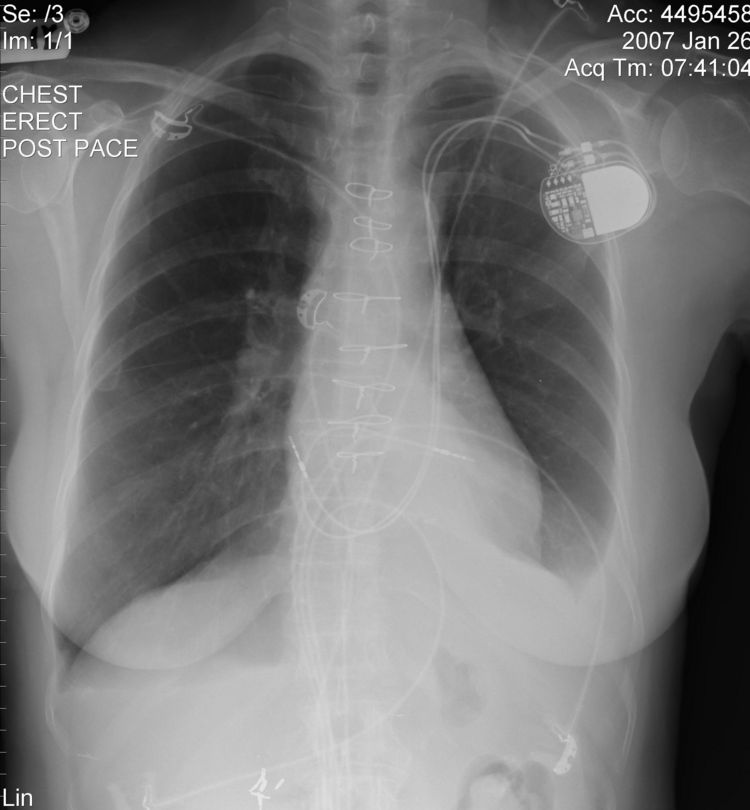The above CXR show the atrial and ventricular pacemaker lead passing through a persistent left sided SVC.